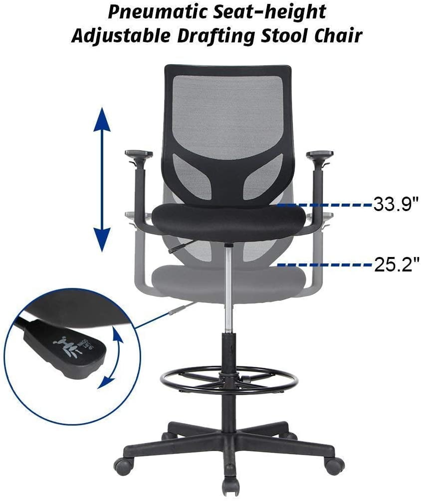 Amazon Com Drafting Chair Tall Office Chair With Adjustable Foot Ring And Armrest Standing Desk Chair With Ergonomic Lumbar Support Breathable Mesh 360 Degree Swivel Rolling For Standing Desk Home Kitchen
